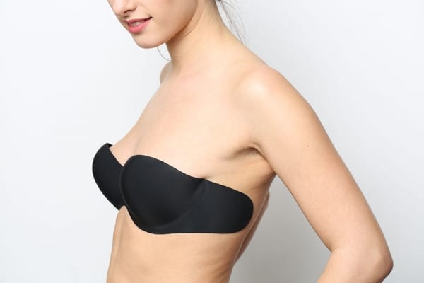 Sans bretelles et sans dos, ce soutien-gorge adhésif, sans couture, découpe laser, libère vos seins : seules les parties latérales sont adhésives.